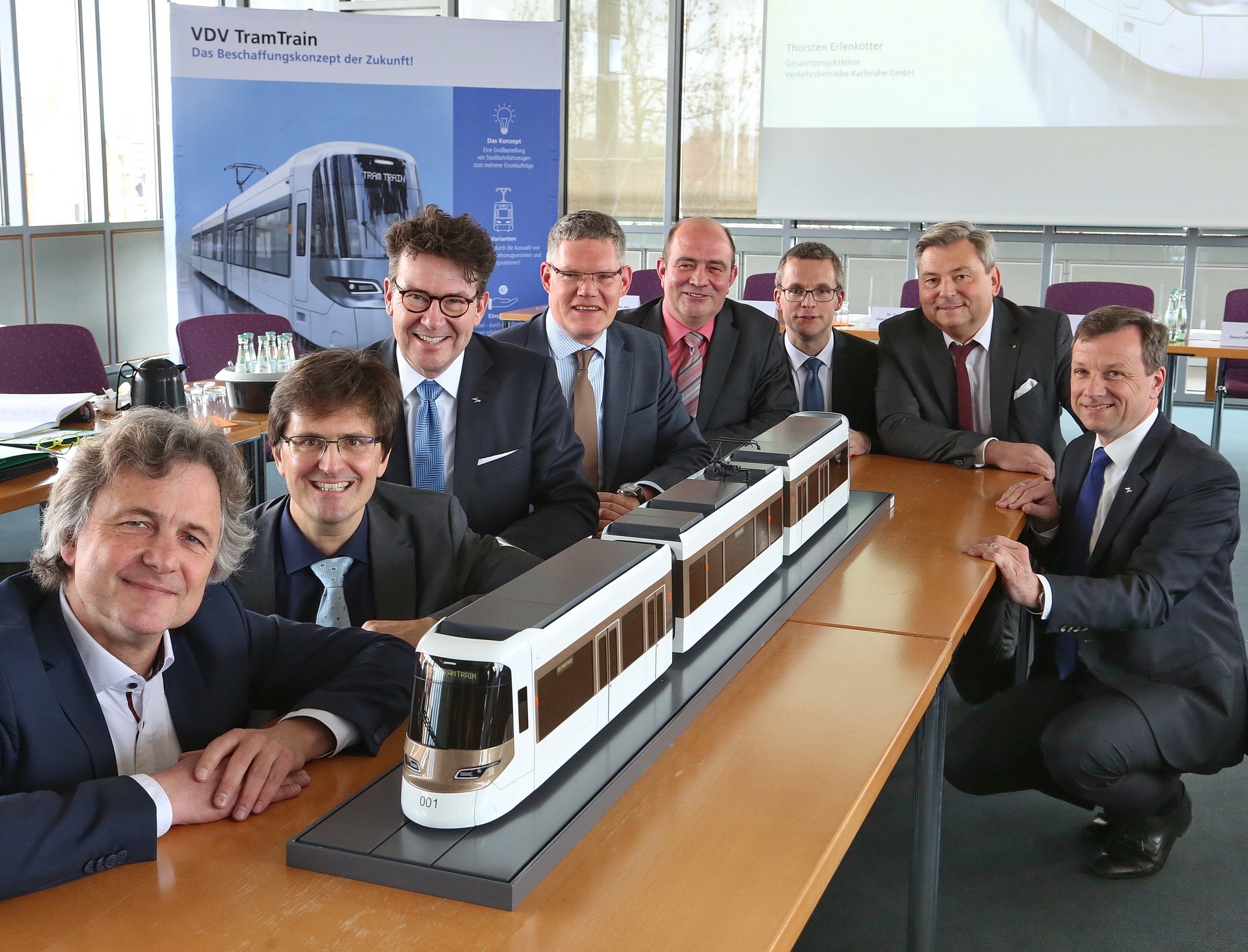 Das Gremium des VDV-TramTrain-Beschaffungsprogrammes und eine erste Visualisierung bzw. das Modell des Standard-Fahrzeuges des VDV-TramTrain