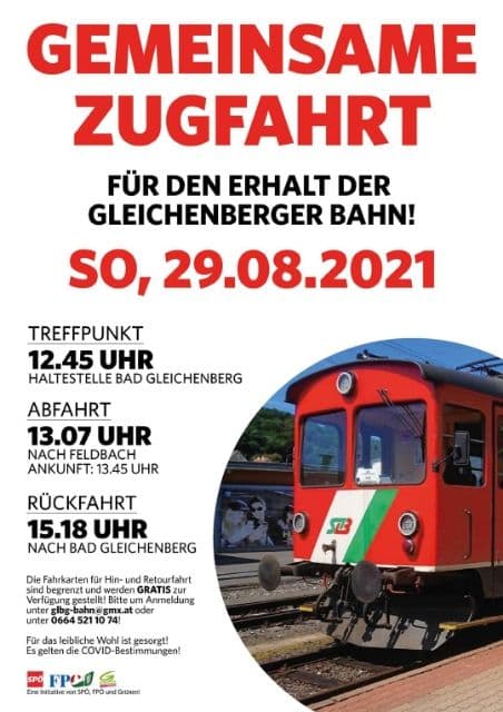 Gemeinsame Zugfahrt Protest-Sonderzug 29.08.2021 Gleichenberger Bahn, Plakat, Politiker etc.